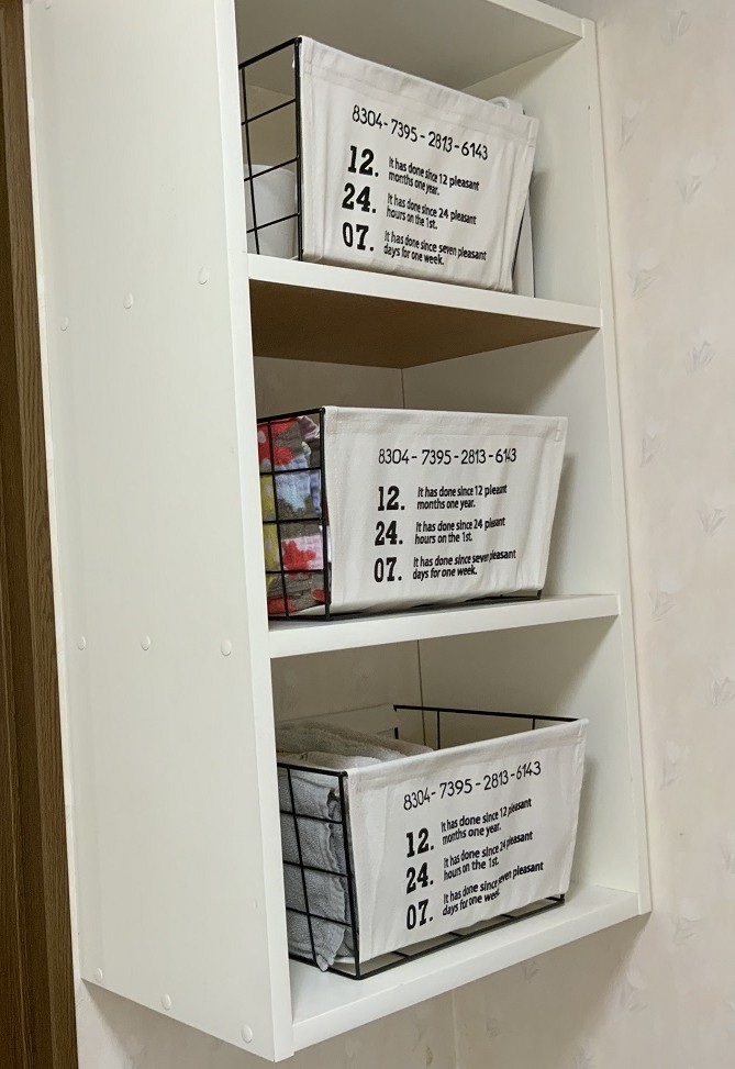 ということで、diyした洗面所の壁面収納は、こんなふうになりました。