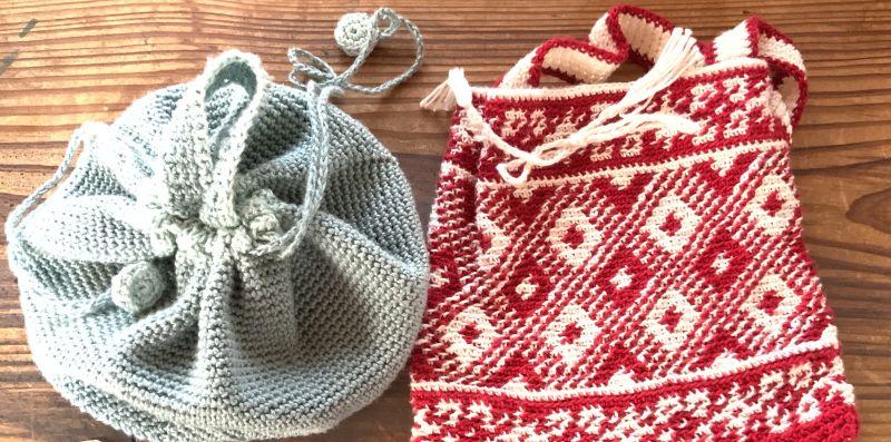 その時は、私もかぎ針で小さなポーチを2つほど作りました。(下が完成写真)