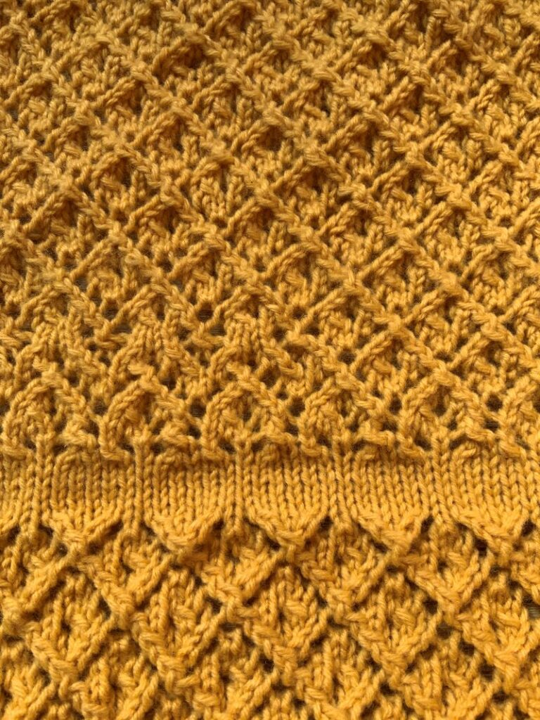 模様編みの増減パターンは、毎段、内容が異なるので、集中力が切れると間違いやすいことに気づきました。
