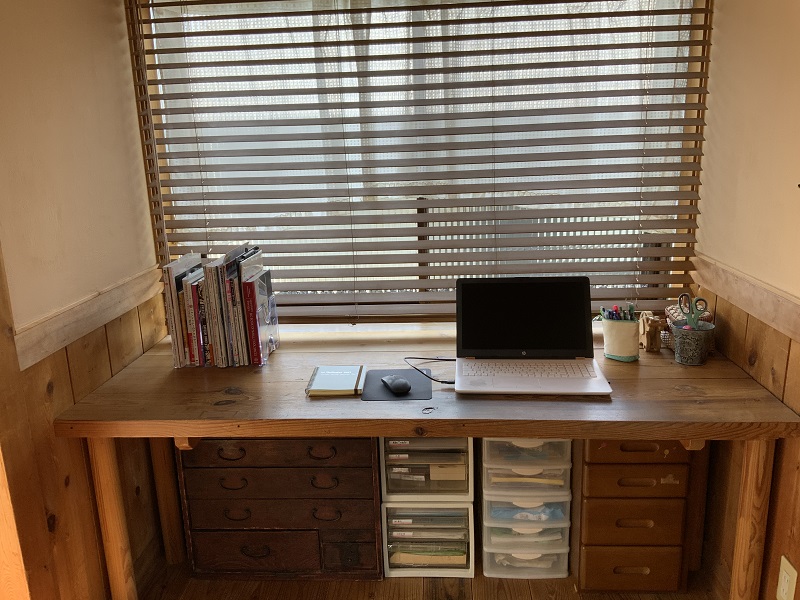 実は我が家もパソコンデスクを置く前は、ベンチを置いて、読書する場所にしていましたし、