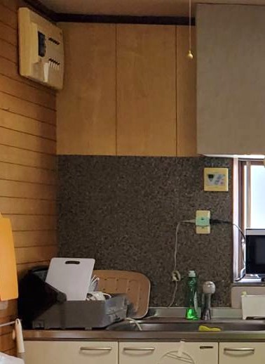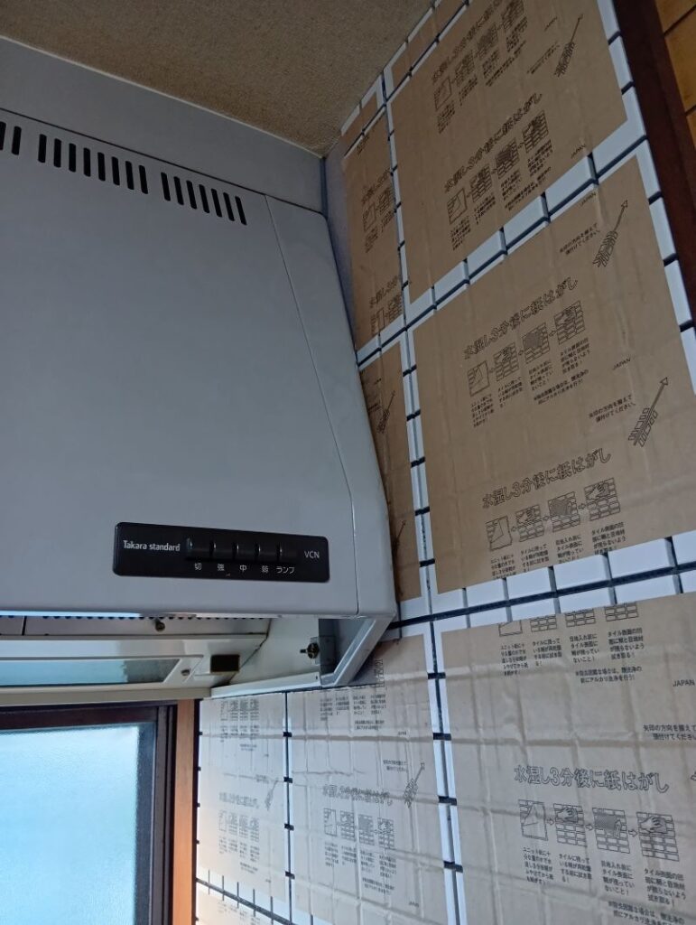 ありあわせのキッチンパネル(しかも寸足らず)が貼ってあった。