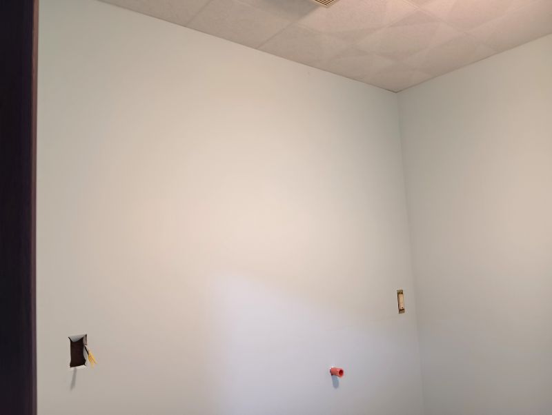 最終的には洗面ボウルの上に鏡を付けたい、ということなので、コードの位置を、下地調整の時についでに変えておかなければなりません。